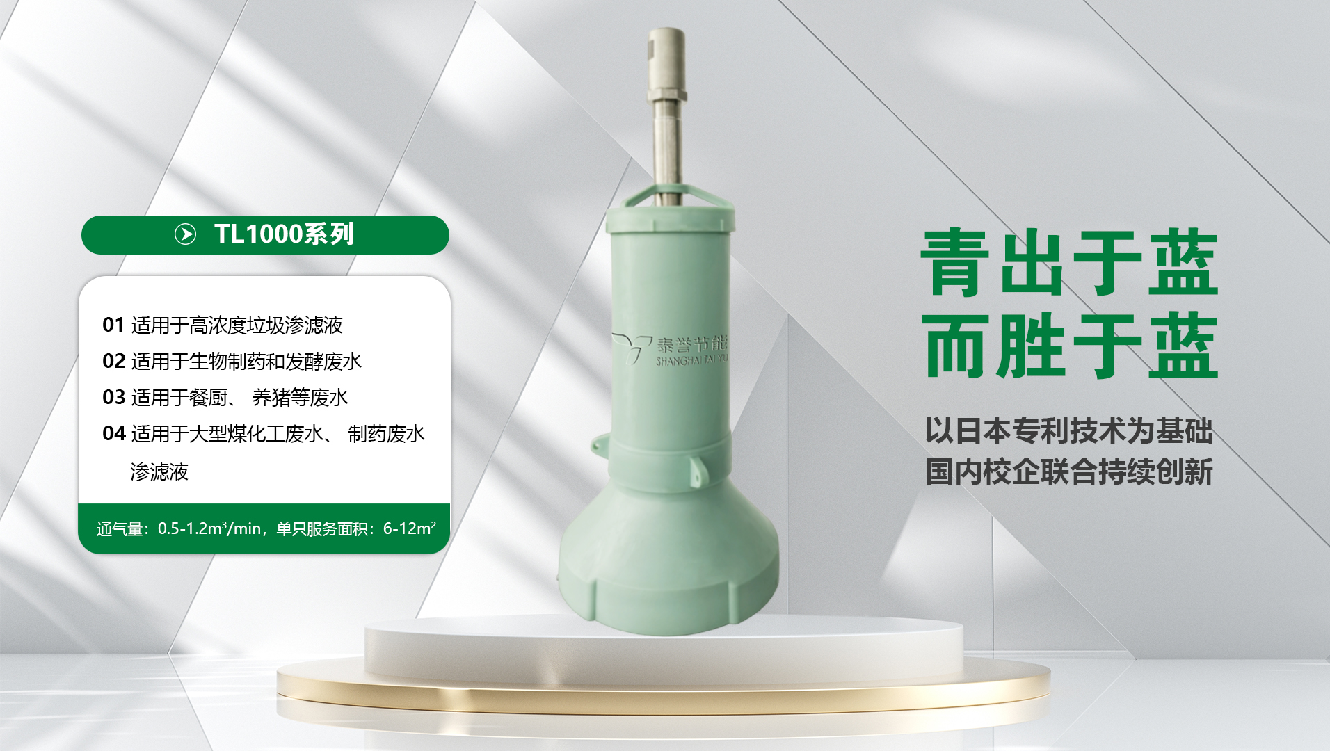 上海泰譽展臺展出TL450系列、TL900系列、TL1000系列等旋流曝氣器。
